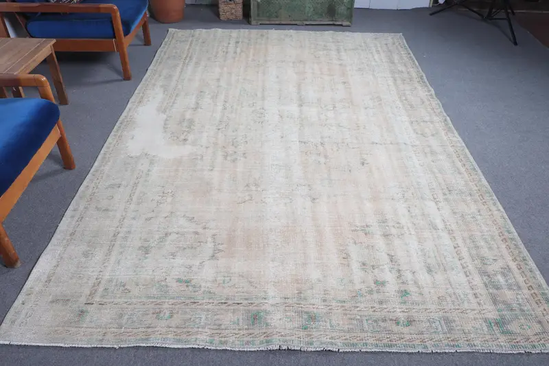 Vibrant Orange & Green Rug, 6.5x9.8 ft Ikat Pattern
