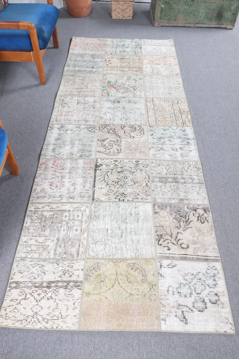 Elegant Beige Rug, 3,4x8,9 ft with Green Accents