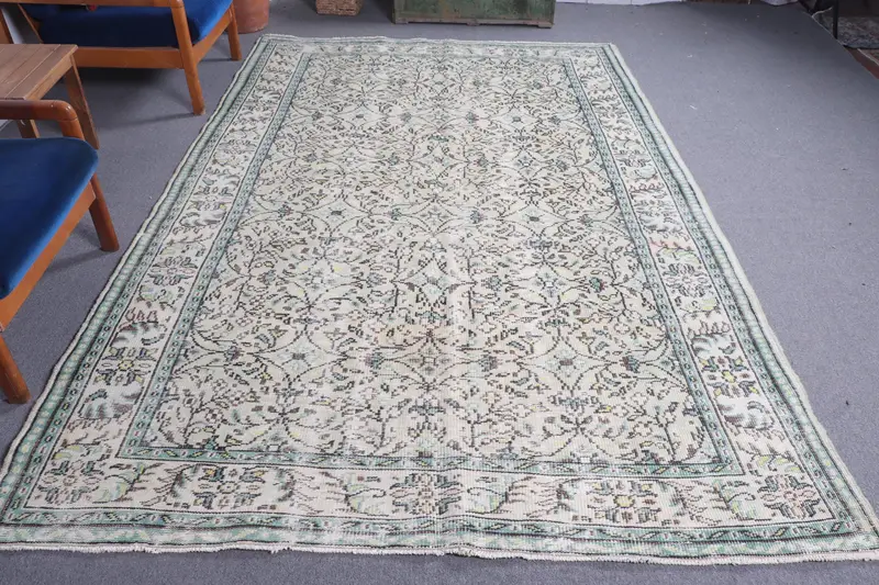 Beige & Green Check Rug, 9,8x6,4 ft Elegant Flooring