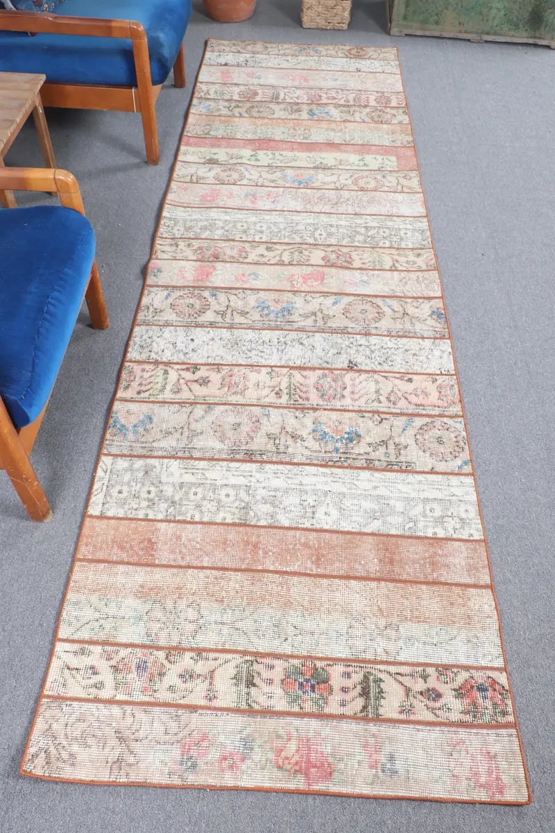 Orange Abstract Rug, 3,1x10,6 ft Beige Accent
