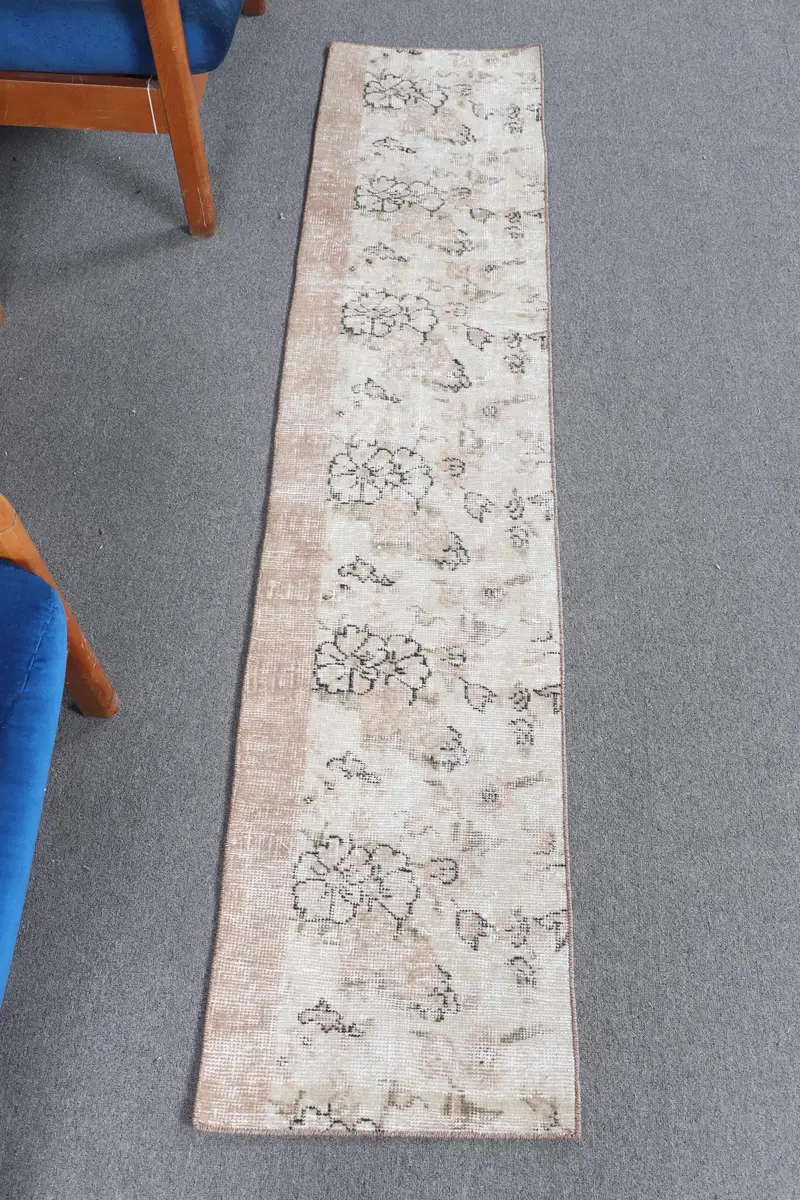Elegant Beige Rug, 1,4x6,3 ft Floral and Geometric Design