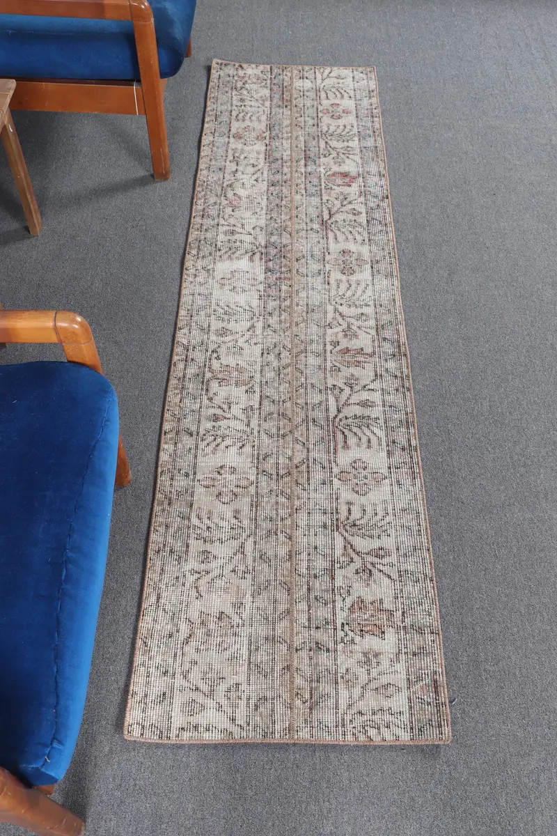 Elegant Beige & Orange Rug, 1,8x6,8 ft Botanical Design