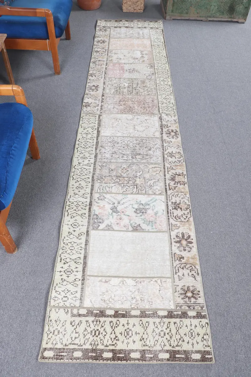 Elegant Beige Rug, 2,3x10,6 ft Ikat Pattern