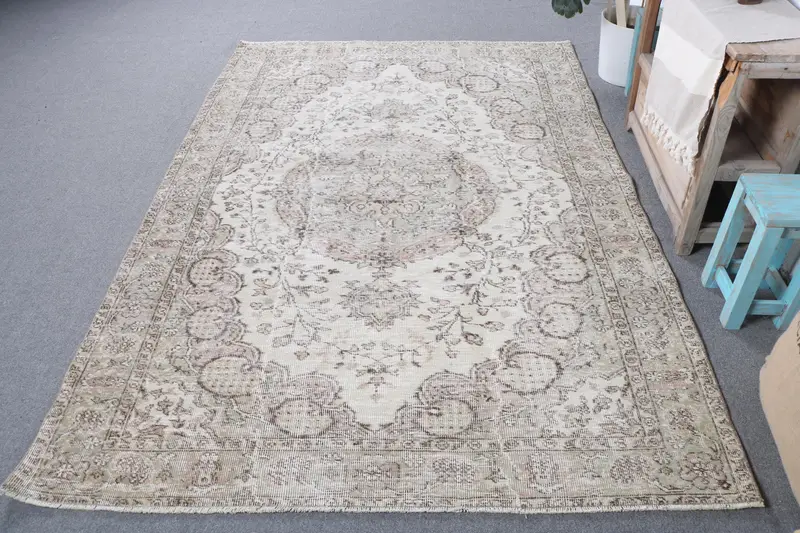 Green & Beige Striped Rug, 5.4x7.8 ft Elegant Decor