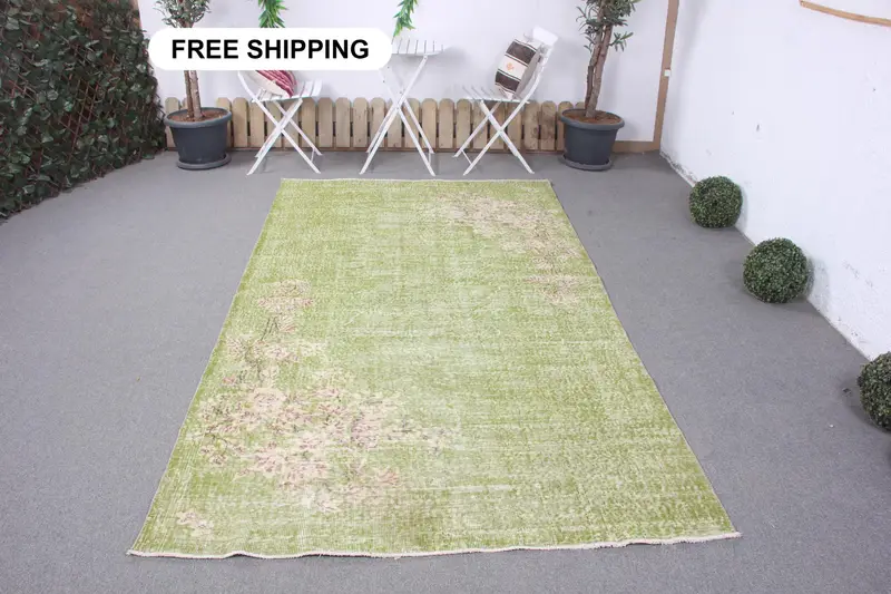 Green & Purple Rug, 5x9 ft Polka Dot Design