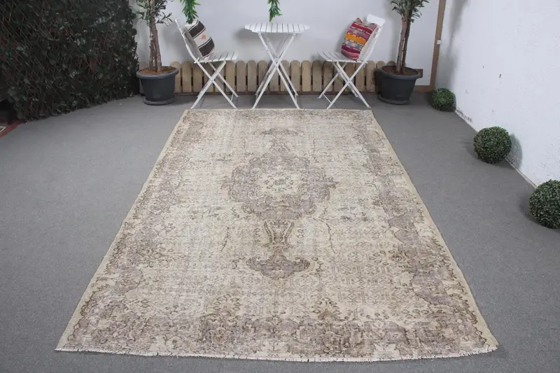 Elegant Beige Southwestern Rug, 5,6x9,3 ft Chic Decor