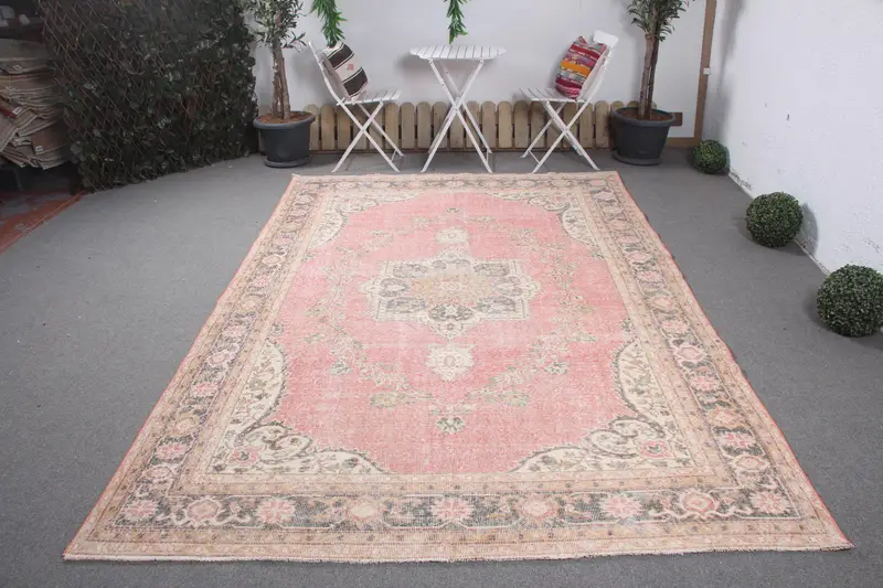 Red & Blue Rug, 6.6x10 ft Bordered Design