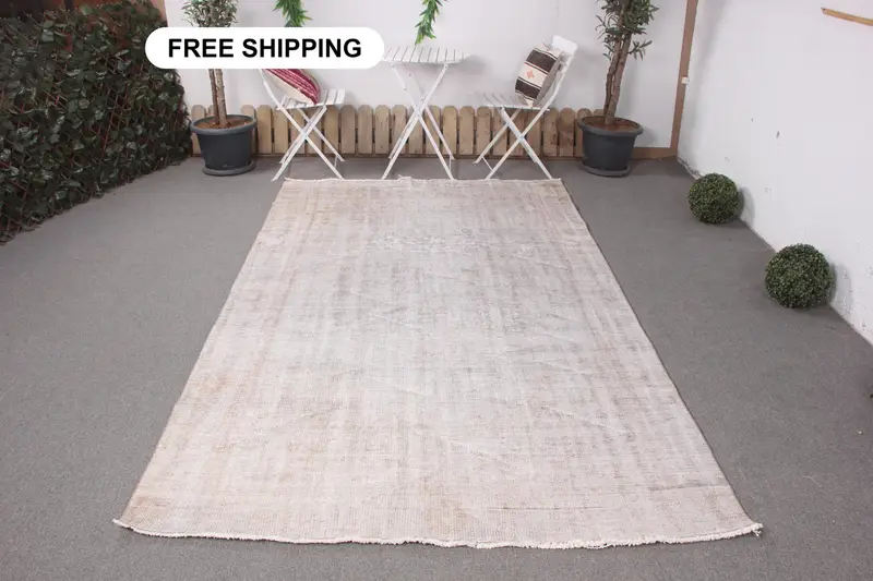 Beige & Brown Check Rug, 5.4x9.2 ft Chic Decor