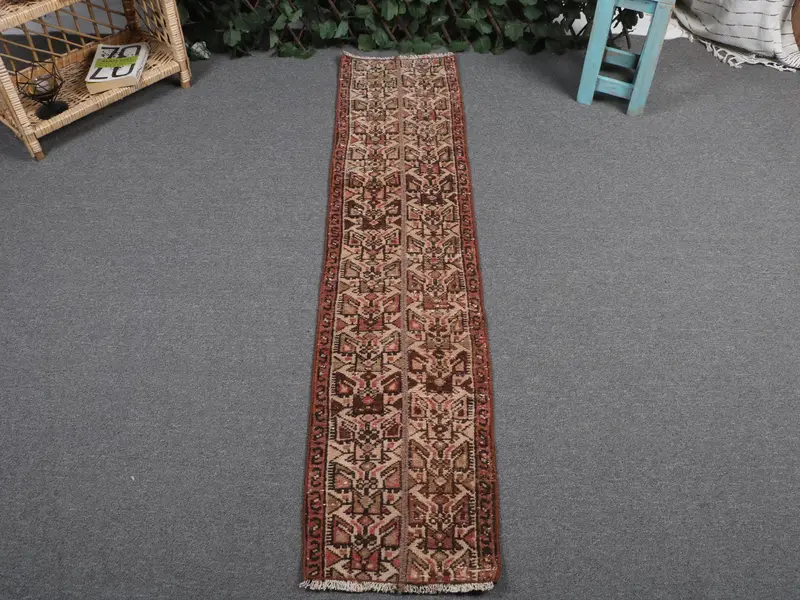 Elegant Beige Persian Rug, 1,1x5,2 ft with Brown Accents
