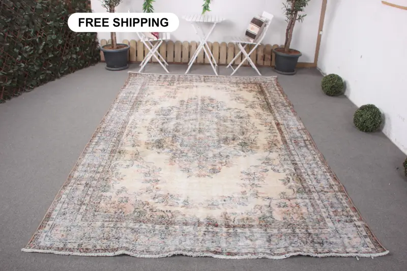 Elegant Beige Rug, 6.5x9.9 ft Bordered Design