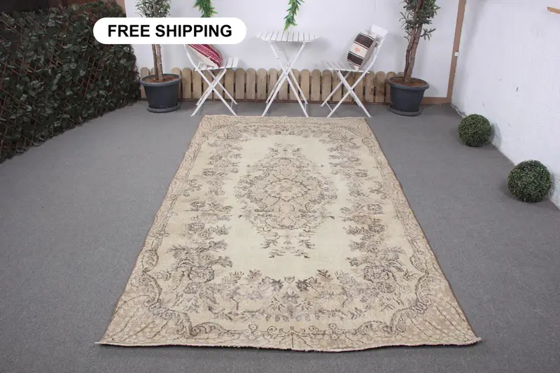 Beige Ikat Rug, 5x9.2 ft Elegant Beige-Brown Decor