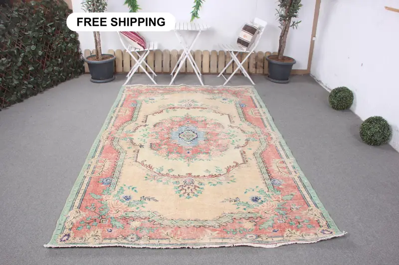 Beige & Red Animal Print Rug, 5.5x8.7 ft Chic Decor