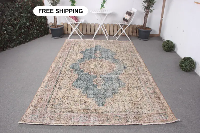 Blue & Purple Patchwork Rug, 5.8x9.4 ft Elegant Decor