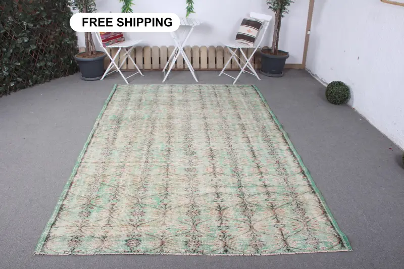 Green & Brown Polka Dot Rug, 5.7x8.7 ft Chic Decor