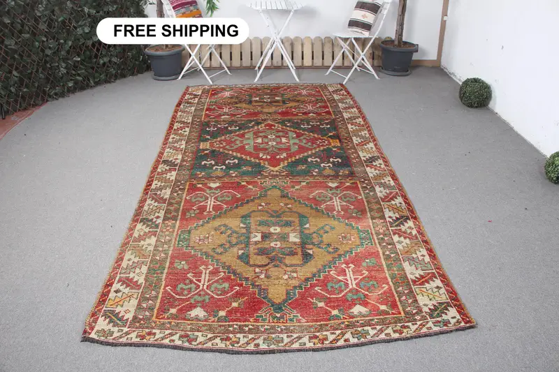 5,1x10,4 ft Green Camouflage Rug, Unique Red Accents