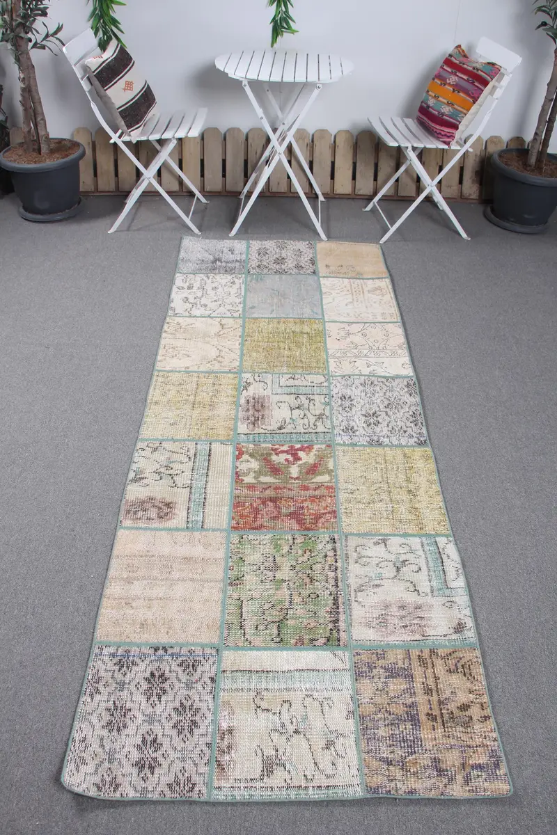 Green Abstract Rug, 3x7.8 ft Vibrant Living Space Accent