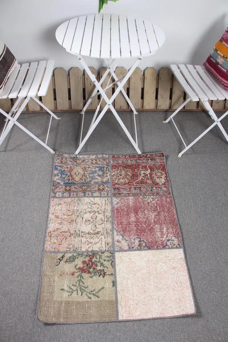 2,4x3,3 ft Red Oriental Rug, Vibrant Blue Accents