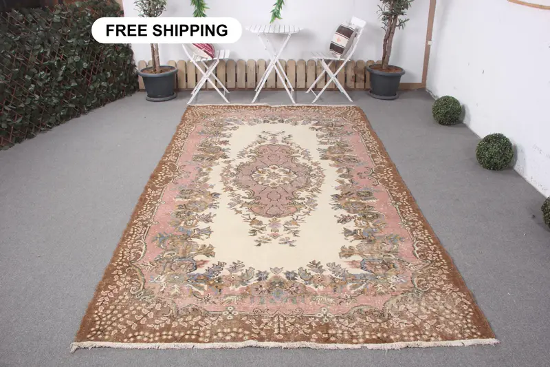 Pink Abstract Rug, 5.7x10 ft Elegant Home Decor