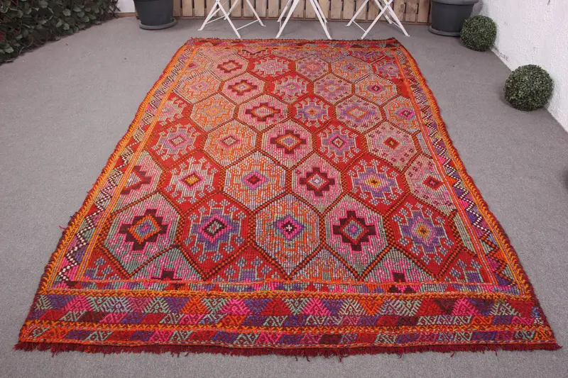Handmade Red Ikat Rug, 5,7x9,2 ft Elegant Decor