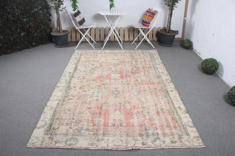 Orange & Blue Rug, 5,5x8,3 ft Striped Geometric Design