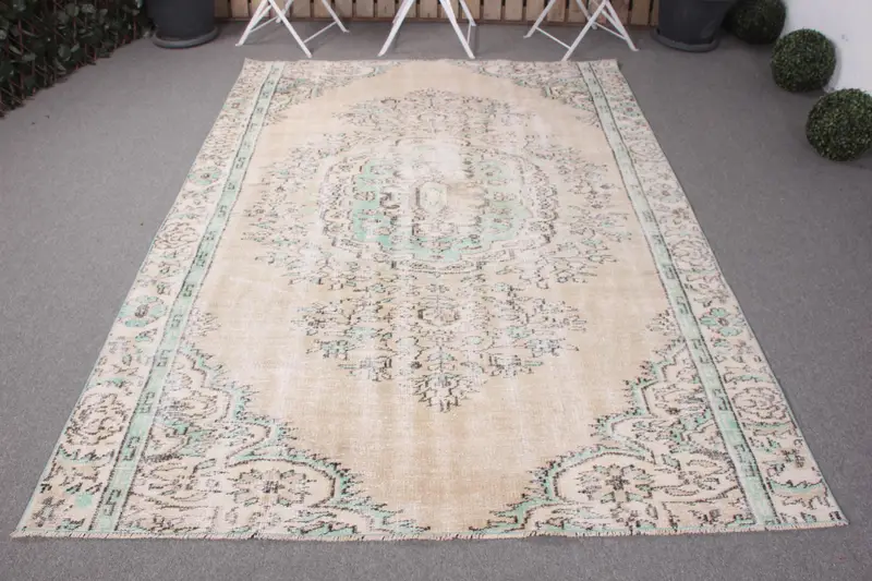 Elegant Beige & Green Rug, 5.7x7.9 ft Polka Dot Design