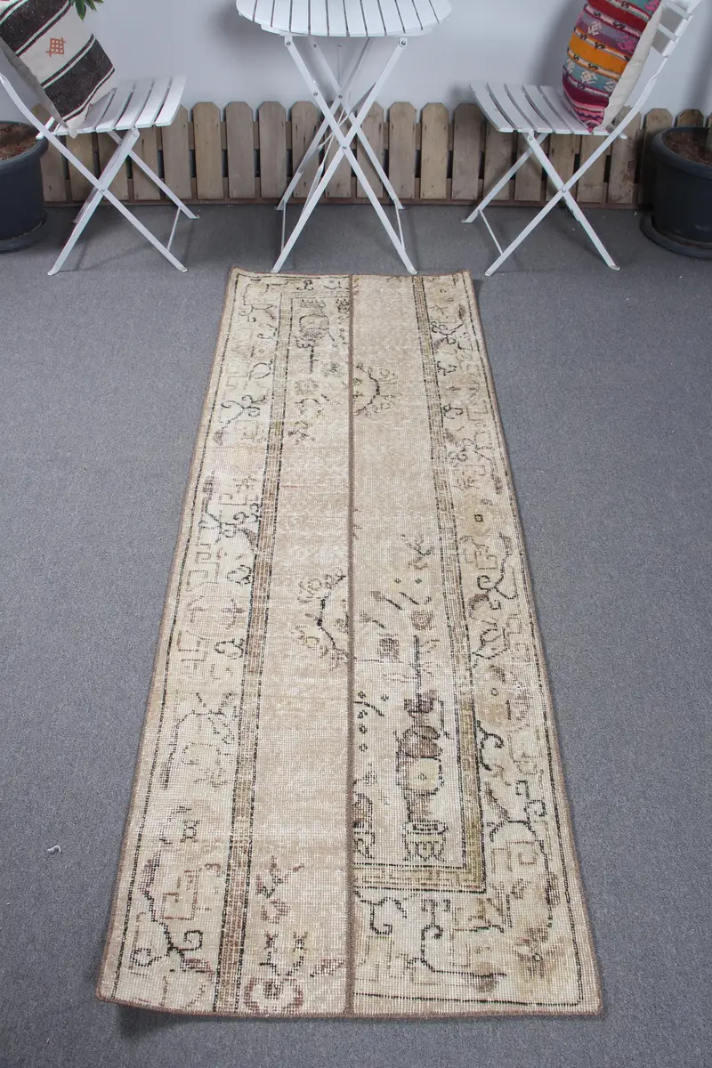 Elegant Beige & Brown Rug, 2.4x6.8 ft Polka Dot Design