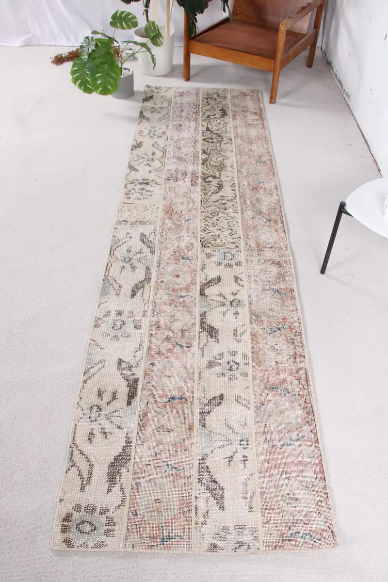 Elegant Beige Oriental Rug, 2.5x9.2 ft with Orange Accents