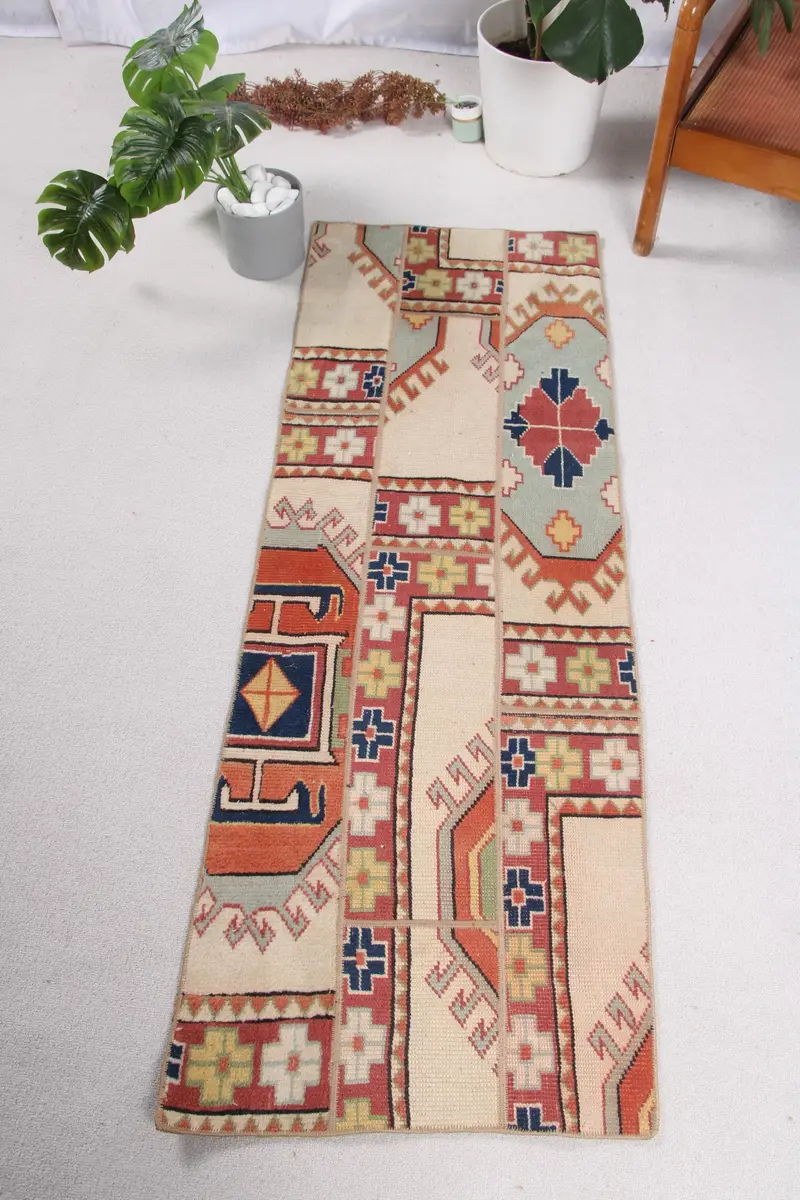 1,9x5,4 ft Beige Ikat Rug, Elegant Red Accents