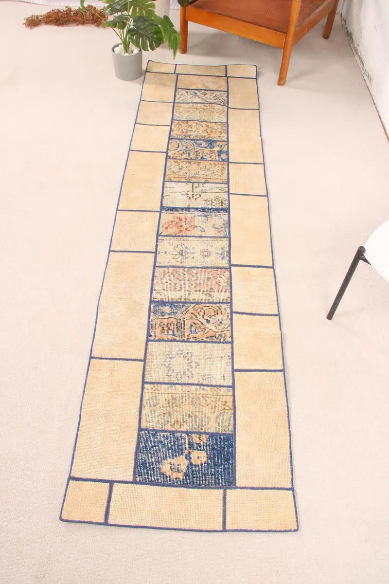 Elegant Beige & Blue Rug, 2x7.8 ft Abstract Design