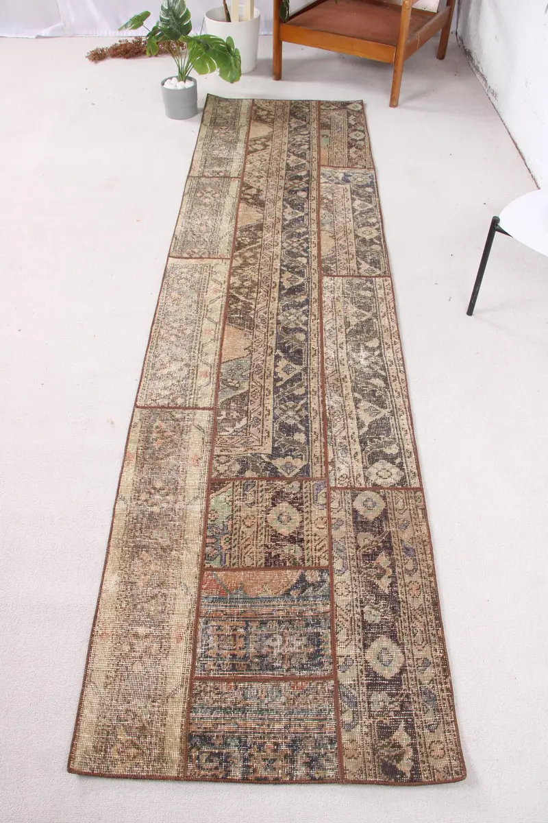 Green Abstract Rug, 2,5x9,6 ft with Blue Accents
