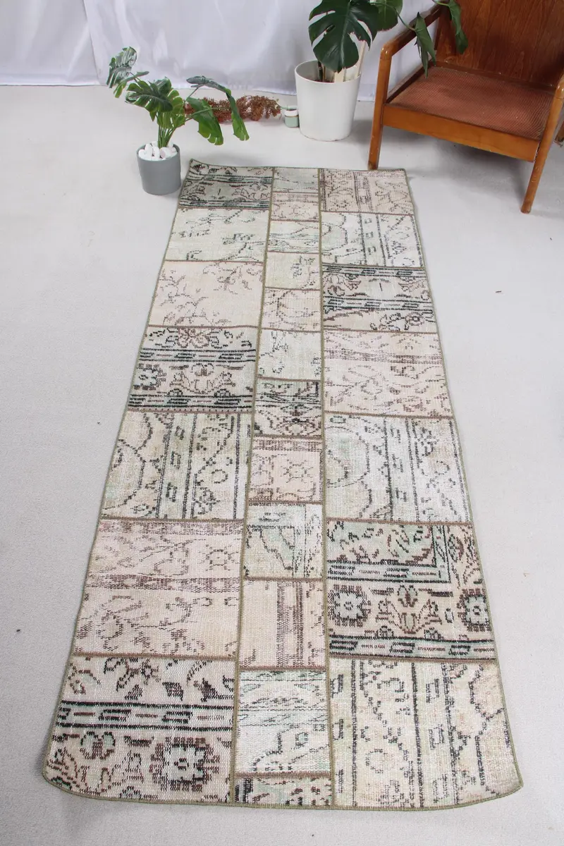 Elegant Green & Brown Rug, 2.9x7.6 ft Floral & Geometric