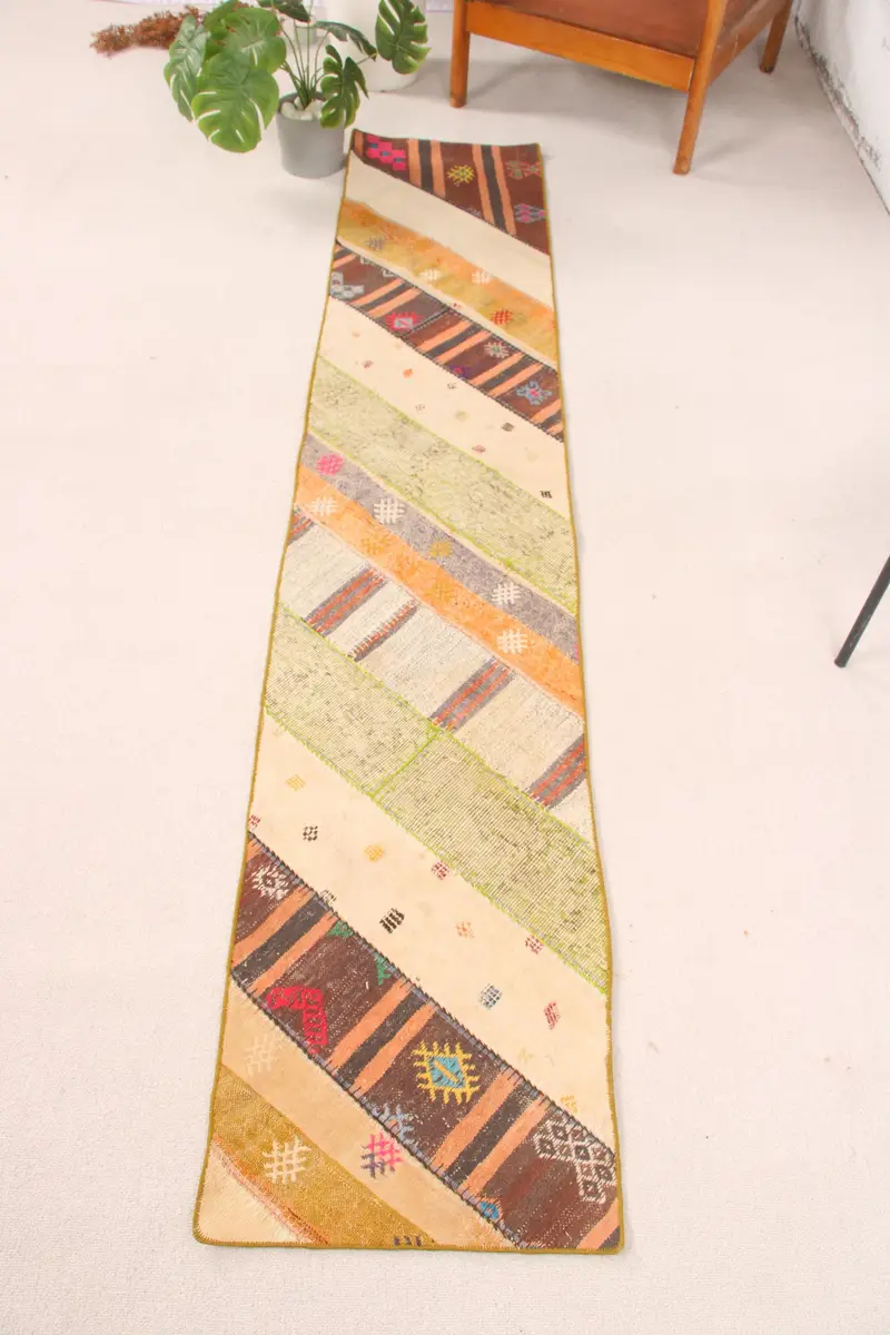 Elegant Beige Rug, Oriental Pattern 1,6x8,1 ft with Green Accents
