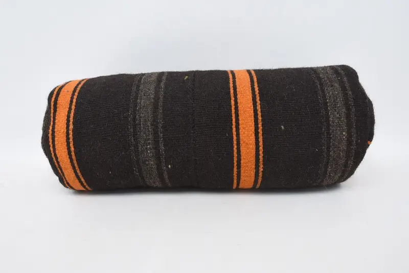 Bohemian Brown & Orange Embroidered Wool Pillow, Decorative Pillow