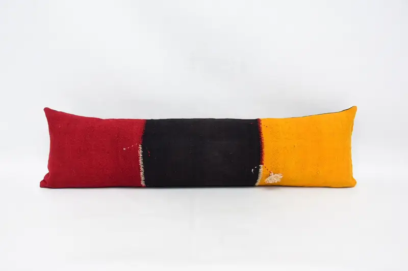 Red & Orange Striped Throw Pillow, Handmade Hemp & Wool Cushion