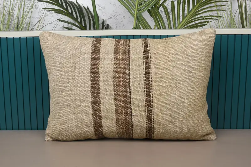Beige & Brown Striped Throw Pillow, Versatile 16x24 Handmade Cushion