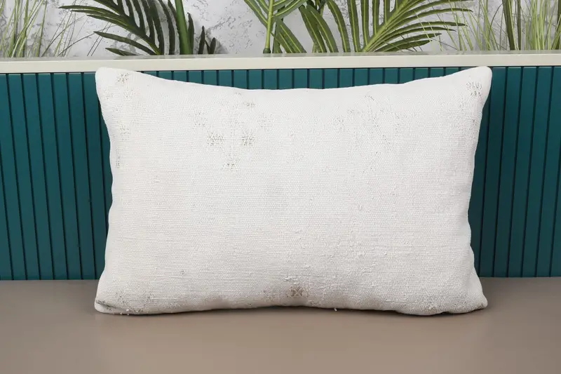 Beige Southwestern Embroidered Pillow, 16x24 Handmade Throw Pillow