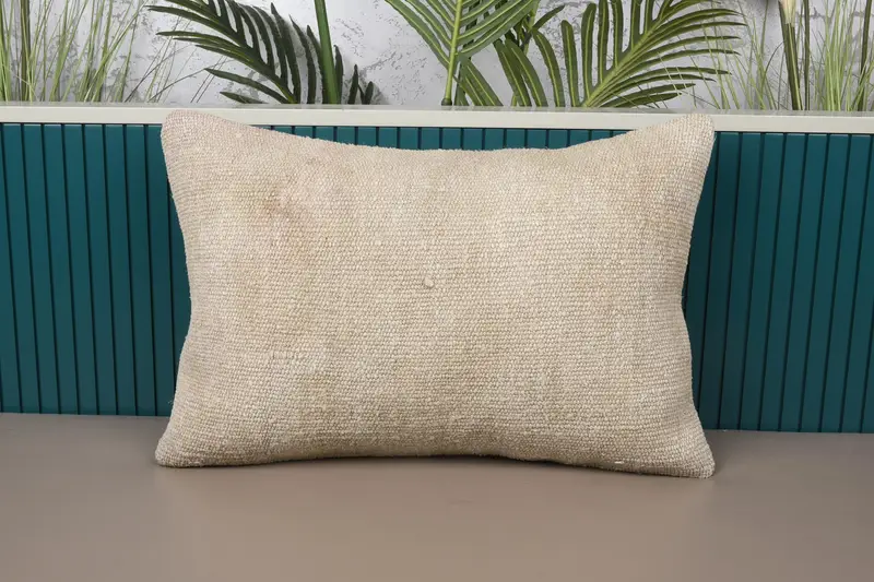 Beige Southwestern Embroidered Pillow, 16x24 Handmade Throw Pillow