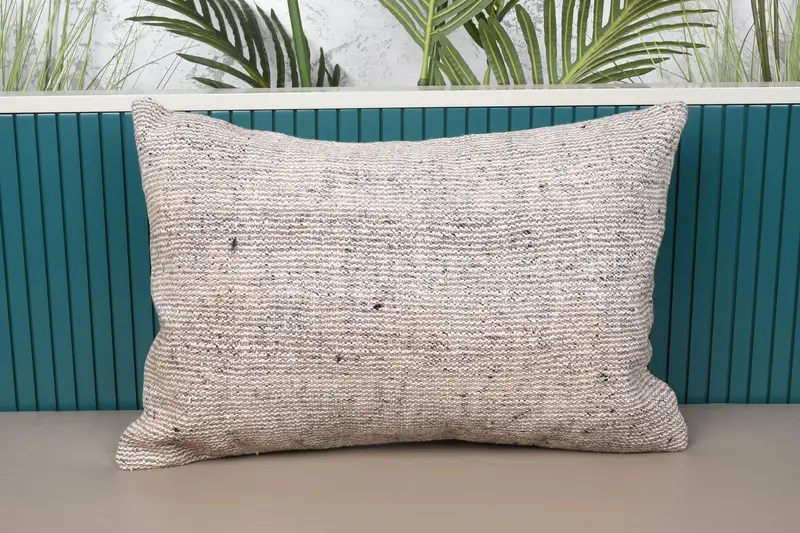Embroidered Southwestern Throw Pillow, 16x24 Handmade Gray & Beige Pillow