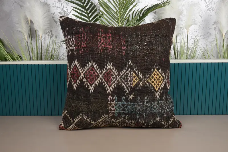 Brown & Purple Southwestern Throw Pillow, Vintage Embroidered Cushion