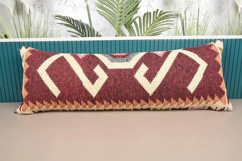 Red Southwestern Embroidered Throw Pillow, Handmade Vintage Cushion