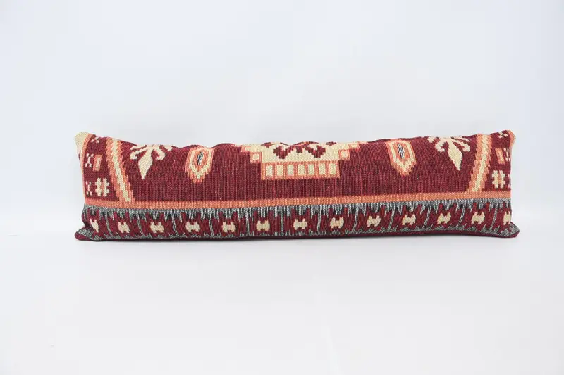 Red & Yellow Embroidered Pillow, Vintage Kilim Pattern Throw Pillow