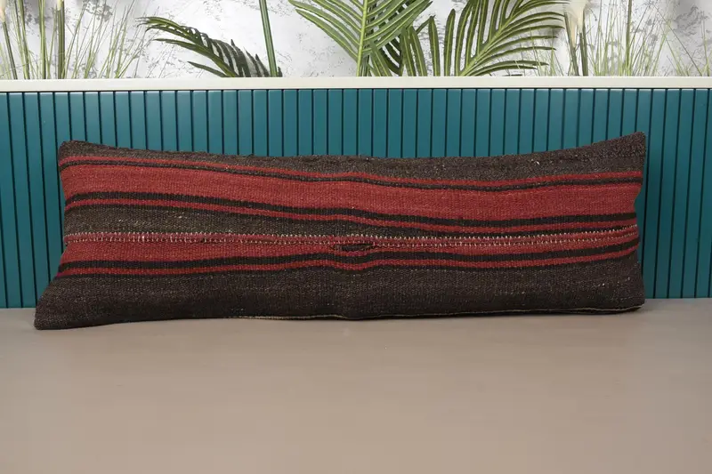Brown & Red Striped Throw Pillow, Handmade Embroidered Cushion