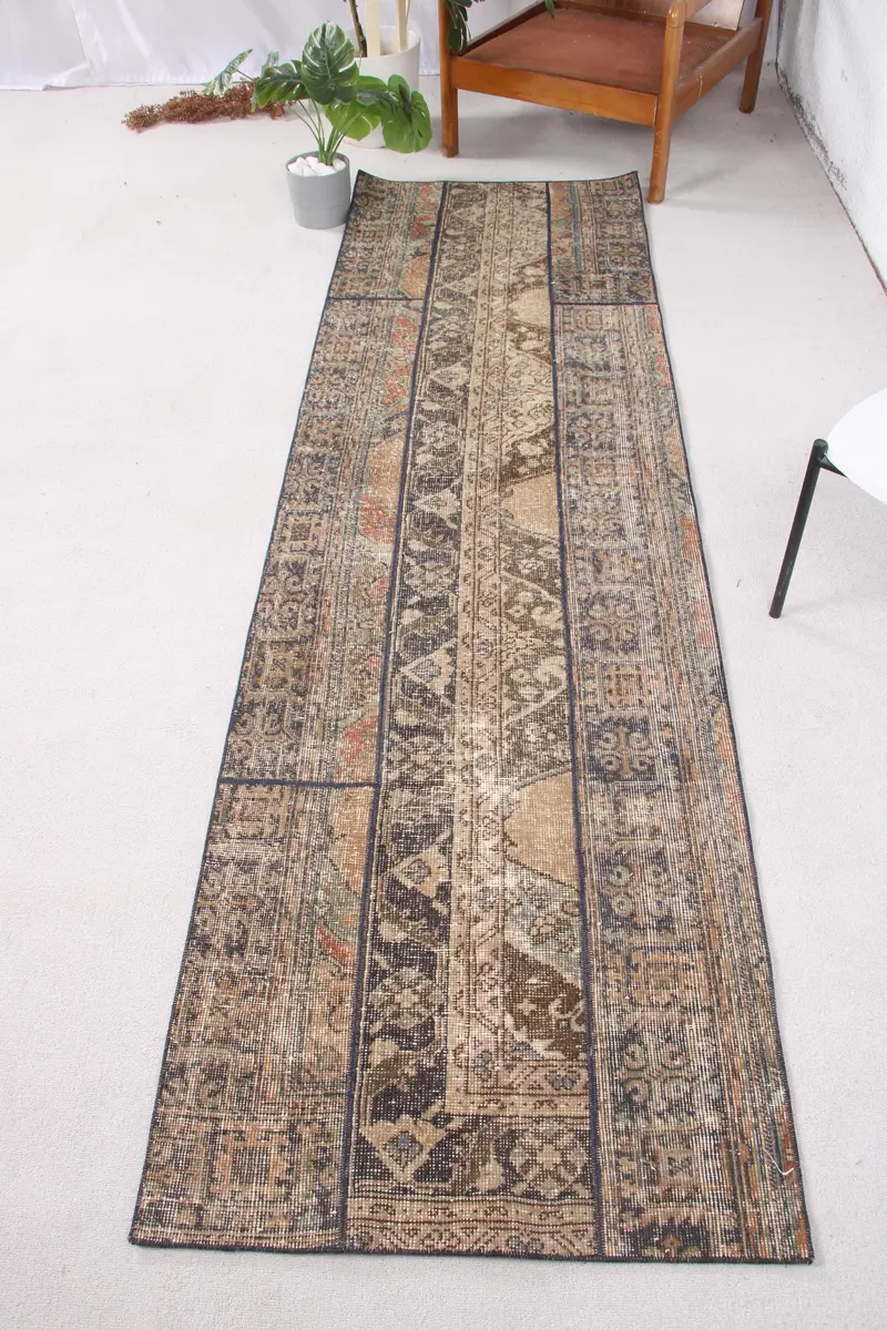 2,5x8,7 ft Blue Rug with Orange Plants, Unique Design