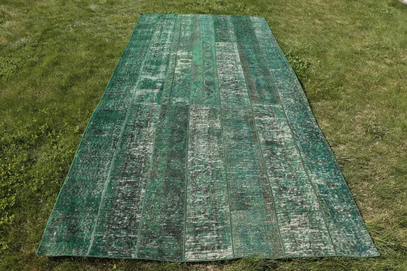 5x10 ft Green Rug with Purple Plants, Unique Botanical Design