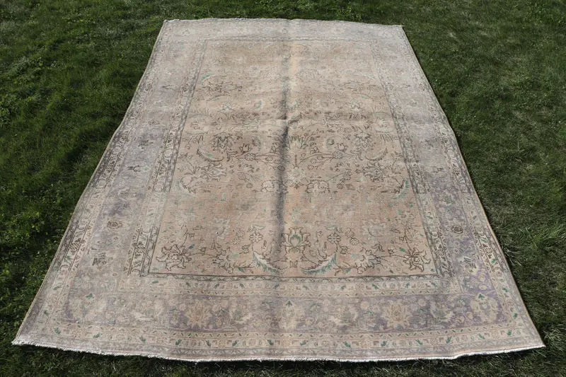 Vibrant Orange & Purple Rug, 6,8x9,7 ft Elegant Ikat