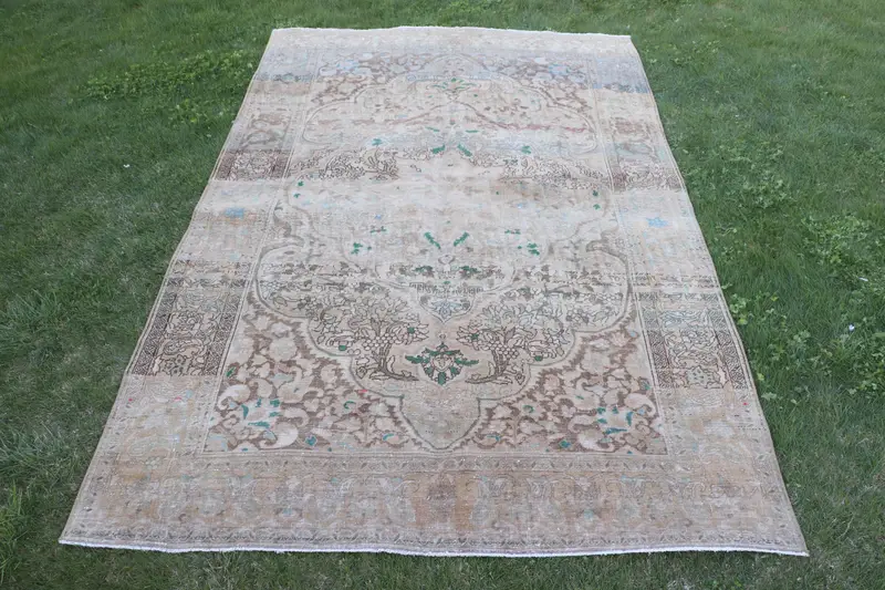 Elegant Beige & Brown Rug, 6.4x10.3 ft Striped Design