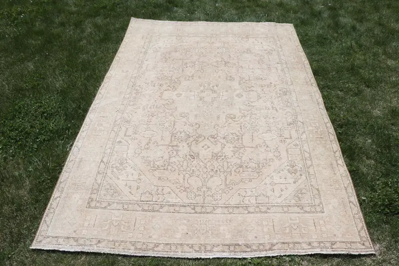 Elegant Beige Floral Rug, 6.4x9.2 ft Chic Decor