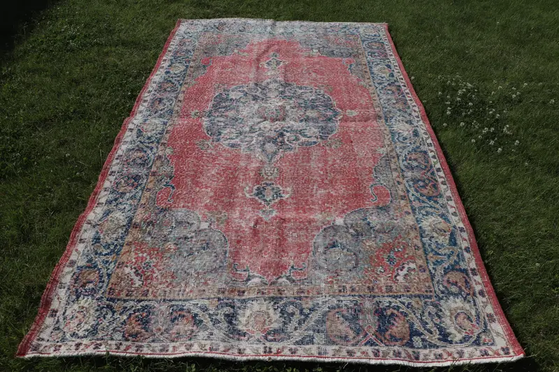 Red and Blue Abstract Rug, 5,2x8,9 ft Elegant Decor