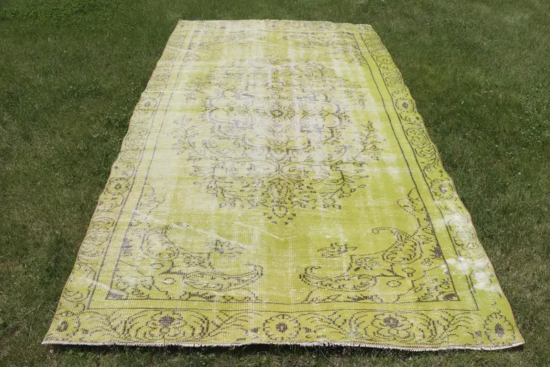 Elegant Green Rug, 5,2x9,4 ft Bordered Design