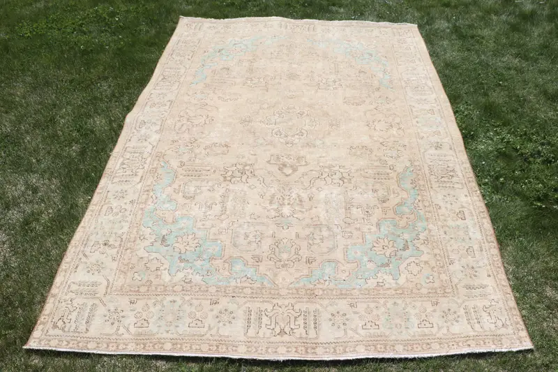 Elegant Beige & Blue Persian Rug, 6,7x9,6 ft